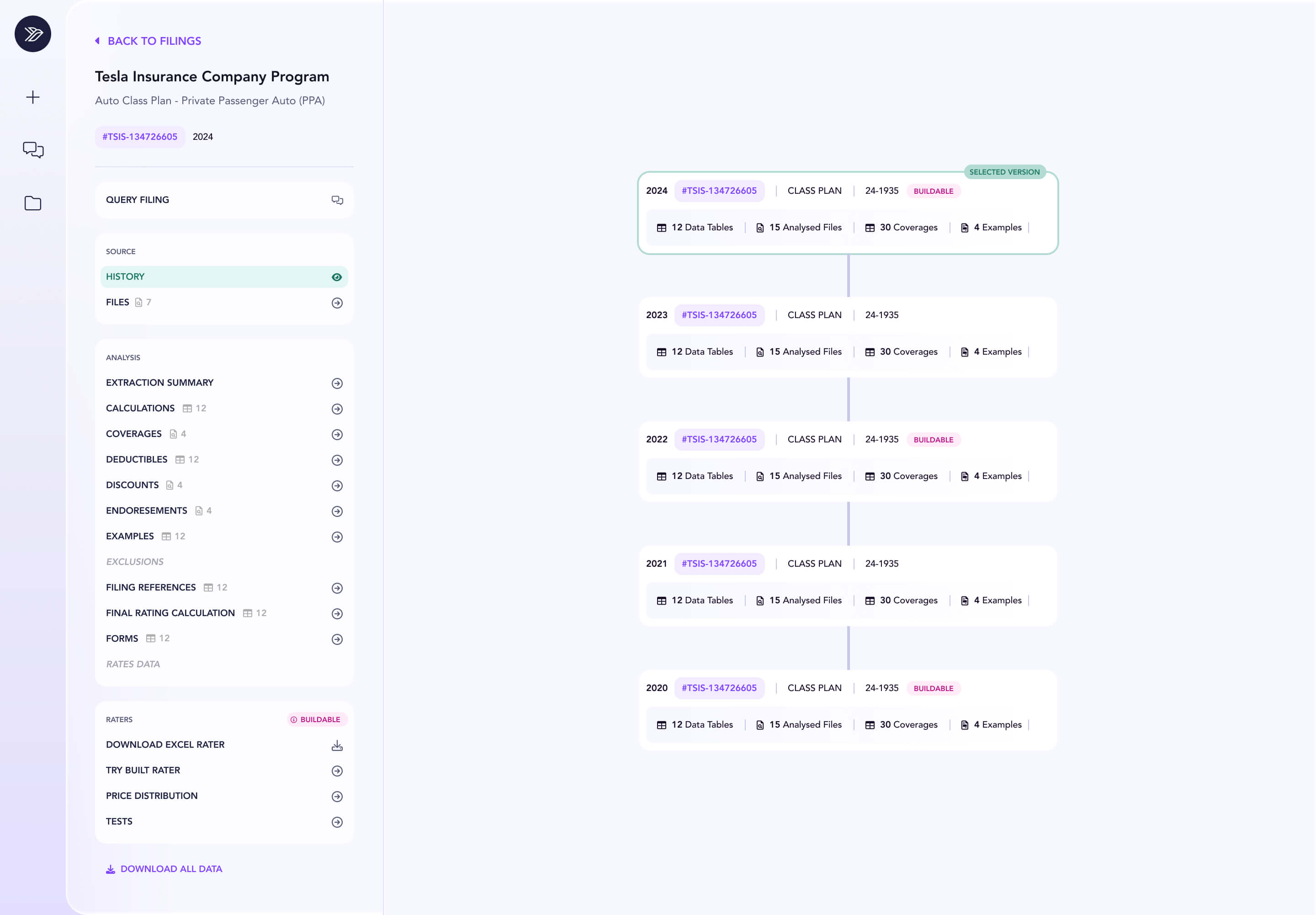 See exactly how every rule, rate and factor evolved across different filings. Audit, review and analyze