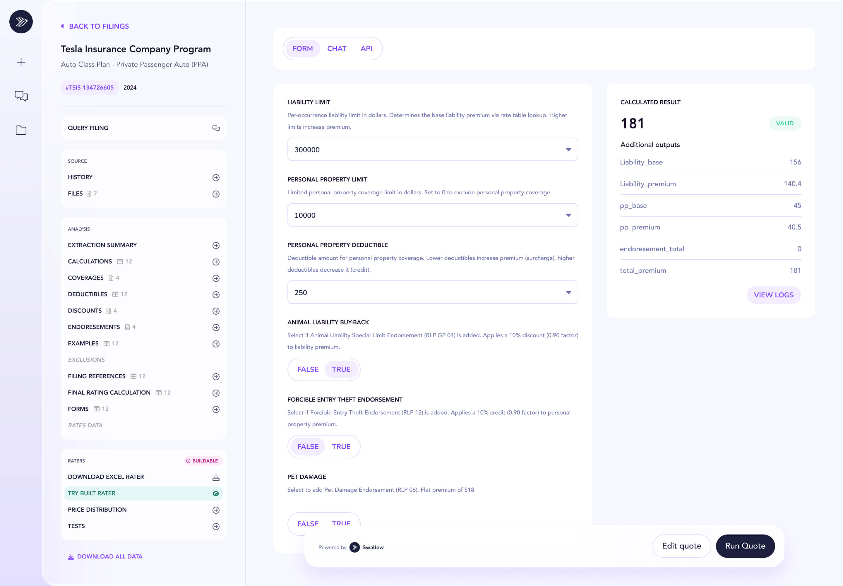 Serve quotes immediately via a robust, tested, and scalable API. Use as a comparative rater or distribute directly